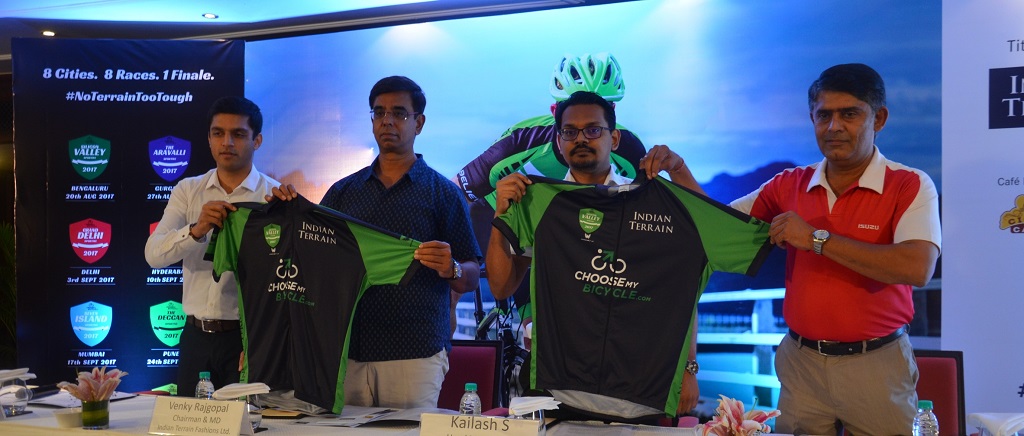 10thAugust, 2017: Indian Terrain Fashions Limited, along with Montra and ChooseMyBicycle.com brings ‘The Champions Sportive Series’ to India. The announcement along with the unveiling of The Champion Sportive Series shield, was done by Mr. Venky Rajagopal, Chairman and Managing Director, Indian Terrain Fashions Limited; in the presence of Mr. Kailash S, Head Marketing, T.I Cycles of India, Mr. Rohit Kuttappa, Chief Executive Officer, ChooseMyBicycle.com, and Mr. K R Capt. J Shankar Srinivas, Sr. General Manager, Communications, PR and External Affairs, ISUZU Motors India Pvt. Ltd.