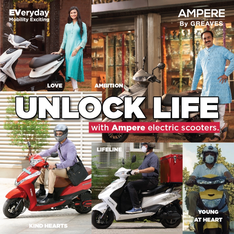 Mumbai, October 20th, 2020: Ampere Electric, a wholly-owned electric mobility subsidiary of Greaves Cotton Ltd., is all geared up to enhance the EV adoption in India with the launch of the ‘Unlock Life’ campaign. This campaign is an ode to new breed of EV buyers seeking wide range of Ampere electric scooter buyers after unlock is announced and more markets are reopened. On this eve, Ampere electric announces unique phygital campaign supported by new range of e-scooters, customised online buying experience & multi-language Call Centre which will operate uninterrupted way to help increasing buyers know more about various aspects of product, share knowhow on features, financing & privileged benefits of getting in to privileged HOLA (Happy Owners League of Ampere) family, thus enhance the EV buying experience across India.