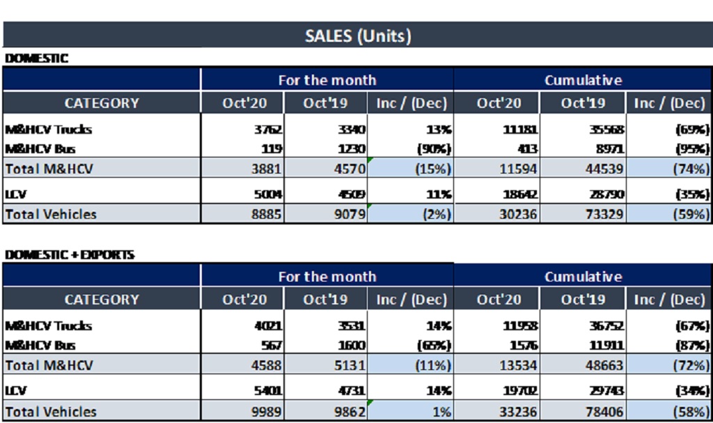 2nd November 2020 Jas Ashok Leyland, Commercial Vehicles, India, Sales 0