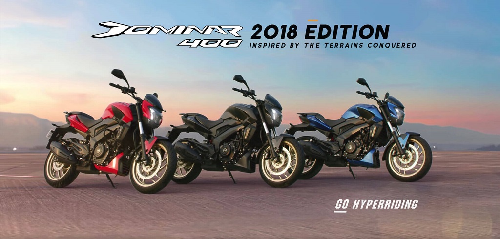 The new Dominar 2018 collection is now available across Bajaj Auto dealerships in disc variant at Rs. 1,42,109 & in dual channel ABS variant at Rs. 1,56,270 ex showroom Delhi.