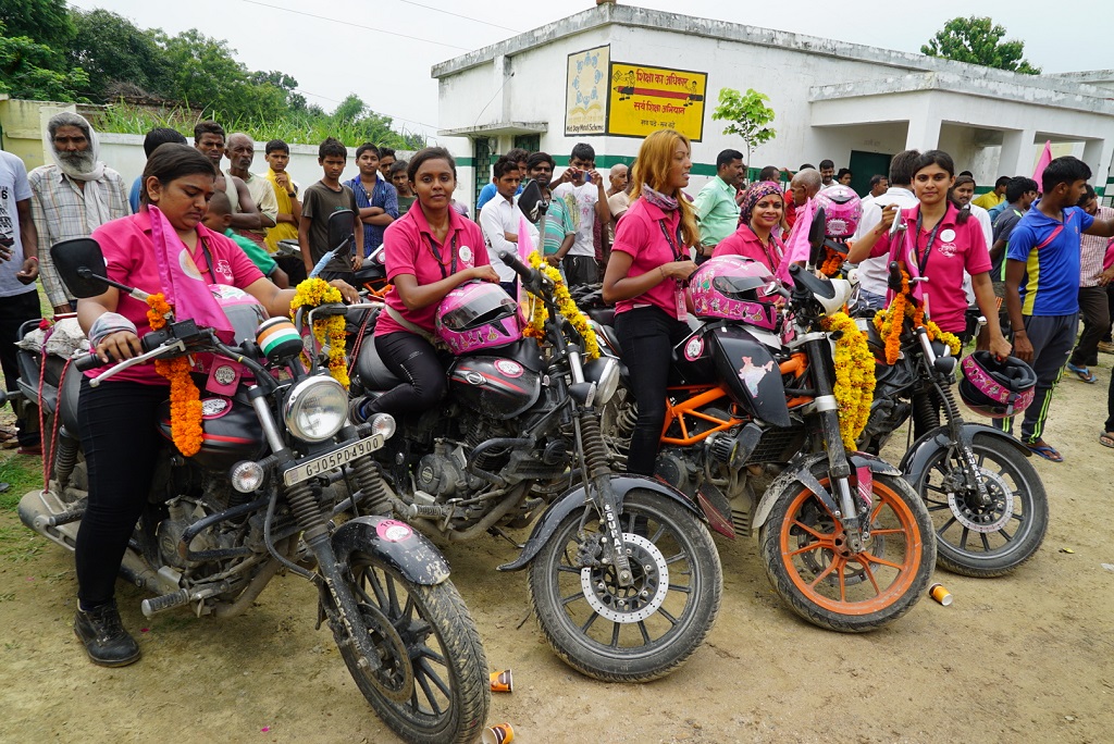 Varanasi, Aug 3, 2017: In a country where women are expected to adhere to their household roles, it was a unique sight when more than 50 women rode to the Nand Ghar in Nagepur on their bikes. The villagers came together to welcome the ‘Biker Queens’ from Surat at their Nand Ghar’s doorsteps. Led by Dr. Sarika Mehta, the biker group visited Nand Ghars today, in the Hon’ble Prime Minister’s model villages ‘Nagepur’ and ‘Kakaria’. The ladies presented ‘educational kits’ to children and ‘hygiene kits’ to women.