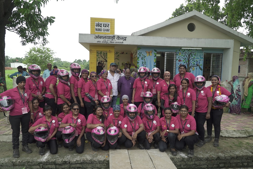Speaking on the occasion, Dr. Sarika Mehta, who leads the Biking Queens group said, “Nand Ghar is a unique initiative which will propagate the Prime Minister’s efforts towards Women Empowerment and child education. I am happy that we met so many women and children who are benefiting by the presence of a modern facility in their village. Women here are motivated through skill trainings to become self-dependent. It was very inspiring to meet them.”