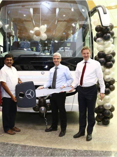 Mr. Erich Nesselhauf, Managing Director and CEO, Daimler India Commercial Vehicles, Mr. Markus Villinger, Managing Director, Daimler Buses India handed over the keys to Mr. KPN Raajesh, Owner of KPN Travels at the DICV Bus plant in Chennai. KPN Travels is one of the largest luxury coach operators in South India with a fleet size of over 330 intercity buses.