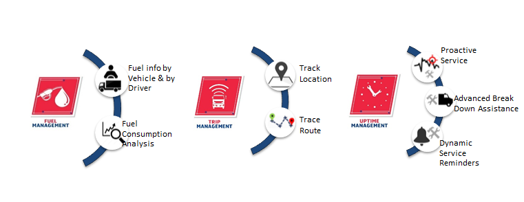- First- ever to introduce uptime management service. Also offers fuel management and trip management