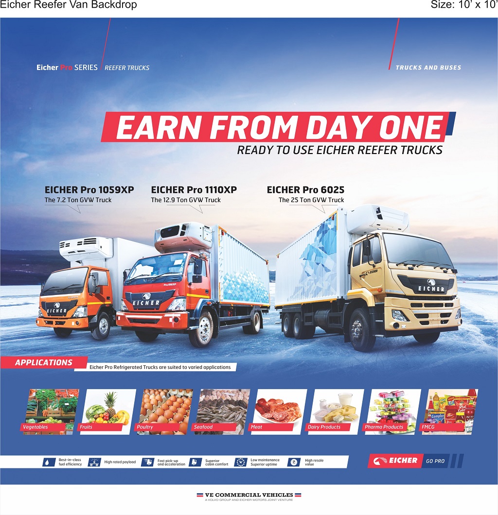 Eicher Trucks & Buses; the leading brand from VE Commercial Vehicles has strengthened its presence in cold chain logistics sector through the expansion of its product portfolio and showcasing of a series of reefer trucks in the Pro 1000 and 6000 category. These include –introduction of Pro 1059XP reefer, Pro1110XP reefer & Pro6025 reefer. With these,Eicher is now ready to provide fully built –ready to use solutions for cold chain logistics.