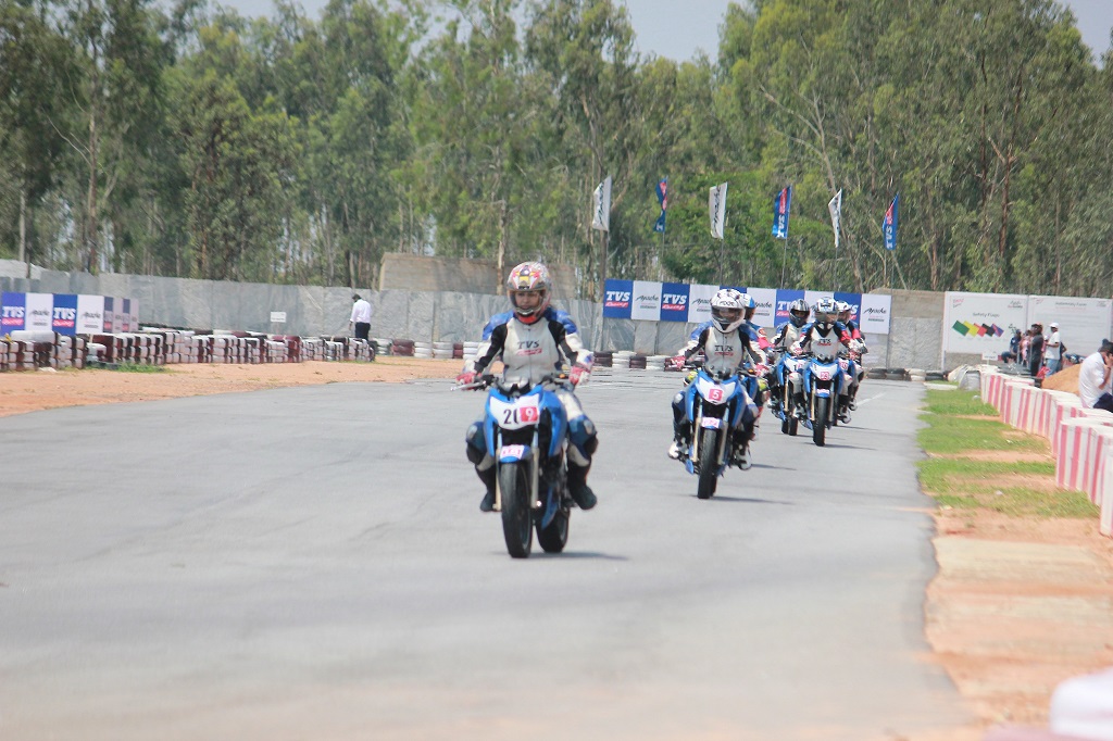 The final 15 women racers selected for the TVS Racing – Training Academy for Women in association with the Rajini Academy of Competitive Racing. 30 women riders attended the day long briefing and training session supervised by Rajini Krishnan and TVS Racing’s Jagan Kumar. Post these session, 15 women racers were selected based on their riding skills and passion. They will compete in 4 races as part of the TVS Ladies One-Make Series 2017 to be hosted along with MMSC.