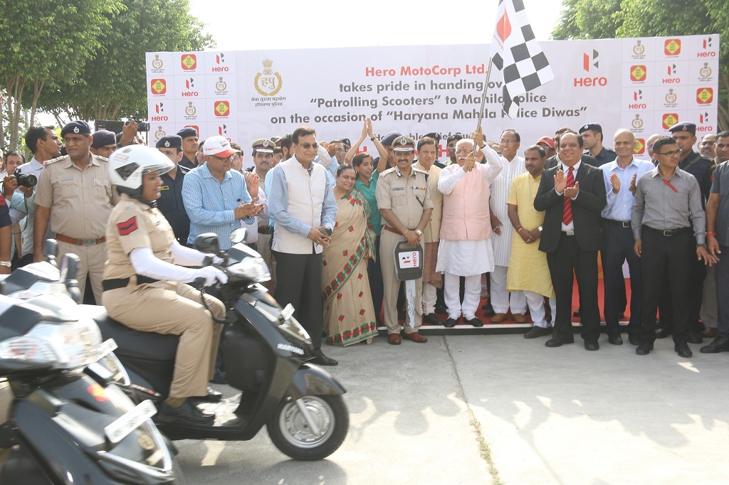 Mr. Vijay Sethi, Head –CIO & Head – CSR, Hero MotoCorp, handed over the scooters in the presence of Shri. Manohar Lal Khattar, Hon’ble Chief Minister of Haryana. Also present on the occasion were Mr. BS Sandhu, IPS, DGP Haryana and other senior police and government officials.