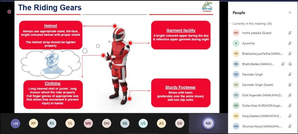 · Exclusive online learning sessions: Empowering women to become safe & independent riders, Honda conducted online sessions exclusively for females. Honda also conducted digital training sessions exclusively for COVID-19 warriors, NCC Cadets and NSS volunteers during the period spanning 6 months.