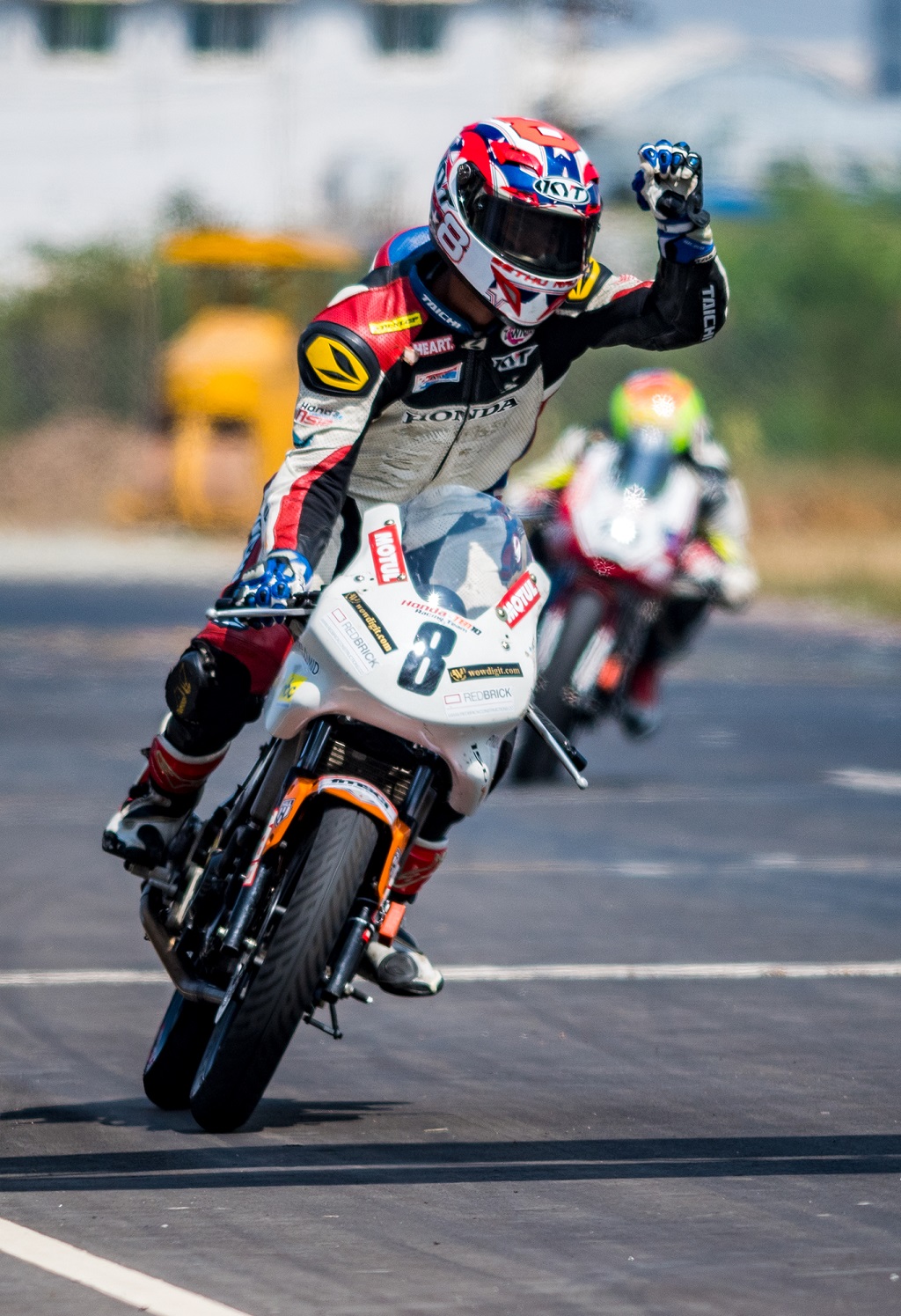Leading from the pole position to the chequered flag, Rajiv Sethu Sethu from Honda Ten10 Racing Team rode his way to the championship in the Pro-Stock 165. Honda also won the manufacturer award in his category.