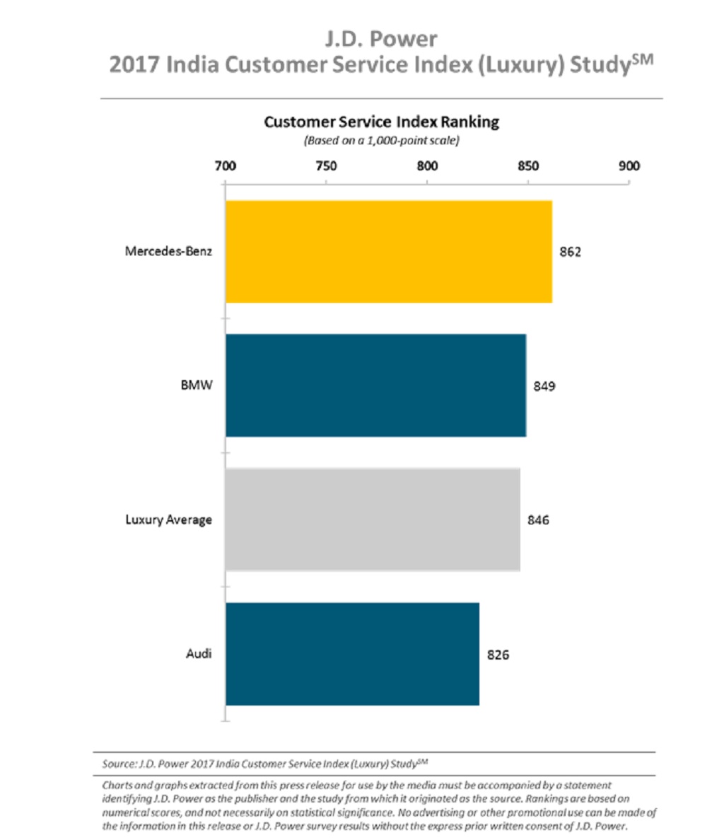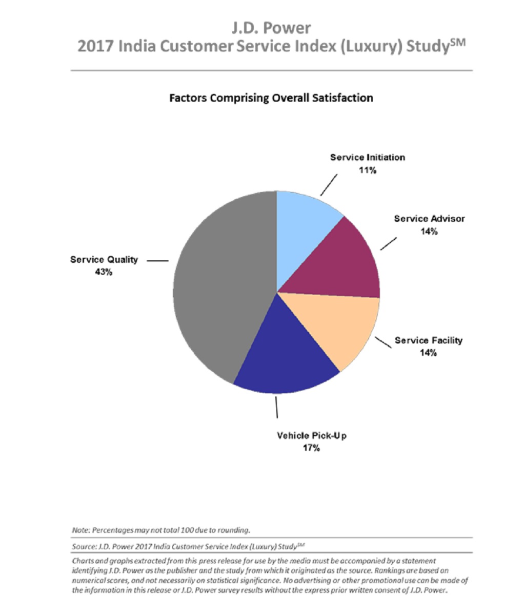 The 2017 India Customer Service Index (Luxury) Study is based on responses from 241 new-vehicle owners in the luxury segment who purchased their vehicle between May 2015 and August 2016 and took their vehicle for service to an authorized dealer or service centre between October 2016 and August 2017. The study was fielded from May through August 2017.