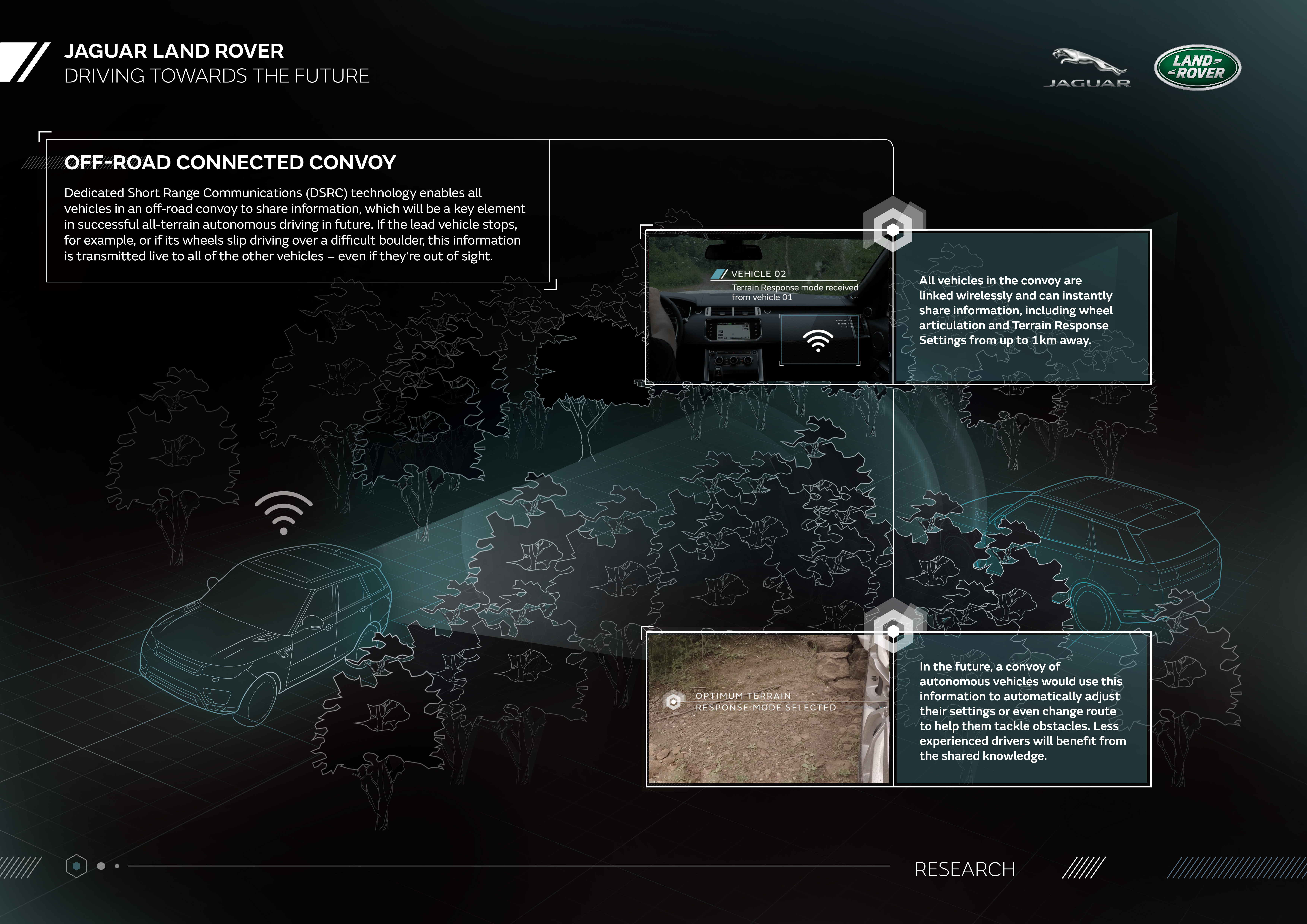 - World-first demonstration of an ‘Off-Road Connected Convoy’using car-to-car communication to aid progress and enhance the driver experience