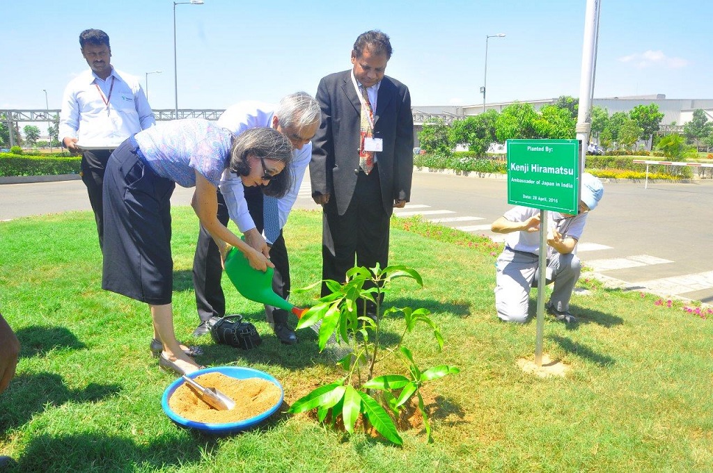 In a gesture to support environment, Mr. & Mrs. Hiramatsu planted a sapling at the facility. Mrs. Hiramatsu, who is appreciative of the Indian culture, freedom and diversity also interacted with a few women employees from the facility.