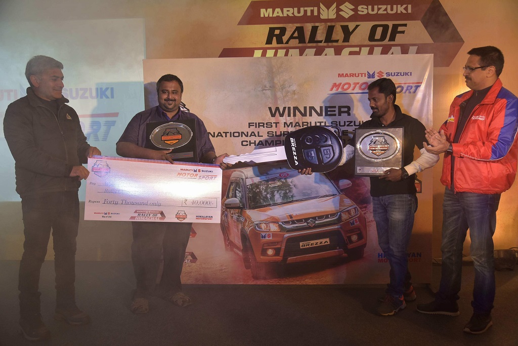 Shimla, January 22, 2016: The 6th and final round of the Maruti Suzuki National Super League Championship concluded with the much awaited ‘Rally of Himachal’ in Shimla. Braving the biting cold and steep winding snow covered roads, Karthick Maruthi driving Vitara Brezza won the much coveted Maruti Suzuki National Super League Championship 2016. Sachin Singh also driving Vitara Brezza and Jagmeet Gill driving Maruti Suzuki S-Cross, won the second and third place respectively, with M.Musthafa being declared as the best navigator of the championship.