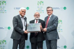 The award ceremony took place at ITF 2016, in the presence of ministers from 57 member countries of the ITF. The theme of the event was ‘Green and Inclusive Transport.’ The award was presented to Mr Kishor Patil by Mr KL Thapar, Founder and Chairman, Asian Institute of Transport Development and José Viegas, ITF Secretary-General.