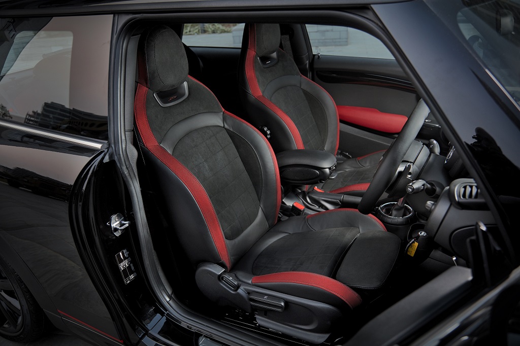The interior features a design that strikes the perfect balance between luxury and racing pedigree, with premium workmanship quality in every small detail. The MINI Cooper S Carbon Edition includes John Cooper Works sports seats, exclusive to this limited edition model in India, with integrated headrests finished in Black Alcantara with contrasting red stitching.