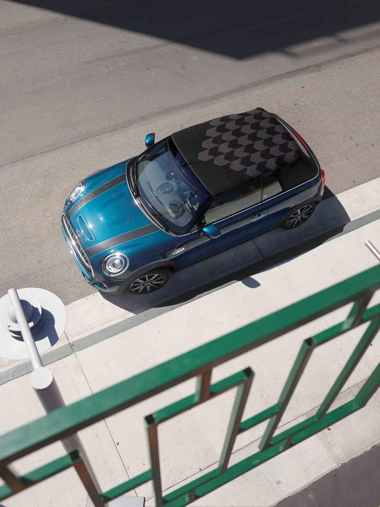 The MINI Convertible Sidewalk Edition combines iconic with contemporary to create aesthetically compelling contrasts. An extra touch of exclusivity is added with the Deep Laguna Metallic exterior colour that is specially developed for this edition, the striking geometric pattern of the soft-top electric roof that opens within 20 seconds makes a lasting impression along with the specially designed 43.18 cm/17″ light-alloy wheel Scissor Spoke 2-tone. Individual side scuttles in the Sidewalk design, door sill finishers made of brushed aluminum also in Sidewalk design and striking bonnet stripes with delicate pinstripes further complement and enhance its unique look.
