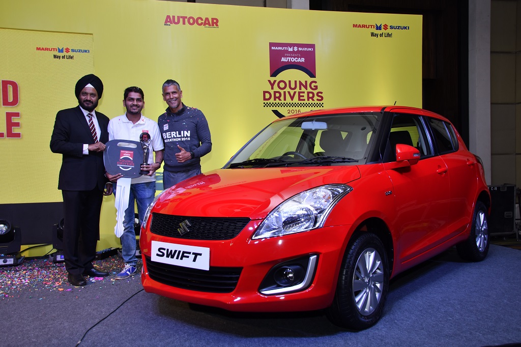 Maruti Suzuki Autocar Young Drivers 2016 is a three phased competition which will test the participant’s awareness about road safety, driving skills and traffic rules. Those within the 18 to 30 age group with a valid Indian driving license were eligible to participate in the contest. Phase 1 saw participants registering on www.youngdriver.in and take an online theory test in the form of a quiz. Phase 2 includes a skill test comprising of a Driving test, at any one of the Maruti Driving Schools (MDS) spread across 59 major cities of the country. In Phase 3, 30 finalists will be flown to Delhi for the grand finale where they will be judged on the basis of 20 parameters pertaining to safety, vehicle control, theory knowledge and its application while driving. In the final Phase, the winner will be adjudged “The Maruti Suzuki-Autocar Young Driver of the year 2016” and will take home a brand new Maruti Suzuki Swift.