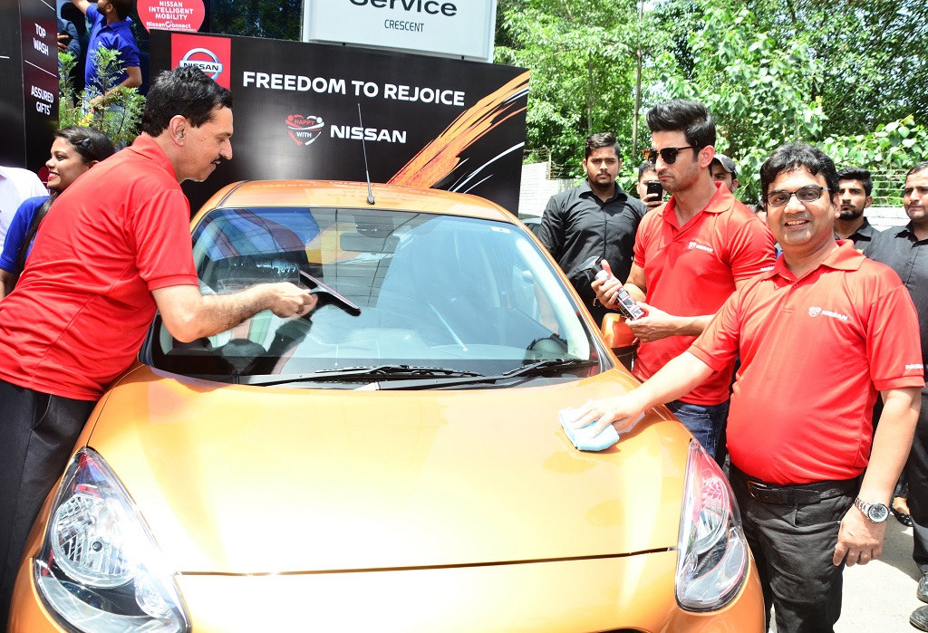 GURUGRAM, India (August 17, 2017)—Nissan India today launched its Waterless Car Cleaning initiative at the opening of the 7th edition of the ‘Happy with Nissan’ service campaign for its customers pan-India. Popular Bollywood actor and Nissan brand ambassador Sushant Singh Rajput kicked off the eco-friendly car wash program with customers at a newly-inaugurated Nissan workshop in Gurgaon. The seventh phase of the ‘Happy With Nissan’ customer service campaign will be conducted at 148 Nissan and Datsun service outlets across India from August 17-24, 2017.