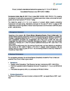 Press release – Pricol Annual Results FY1617