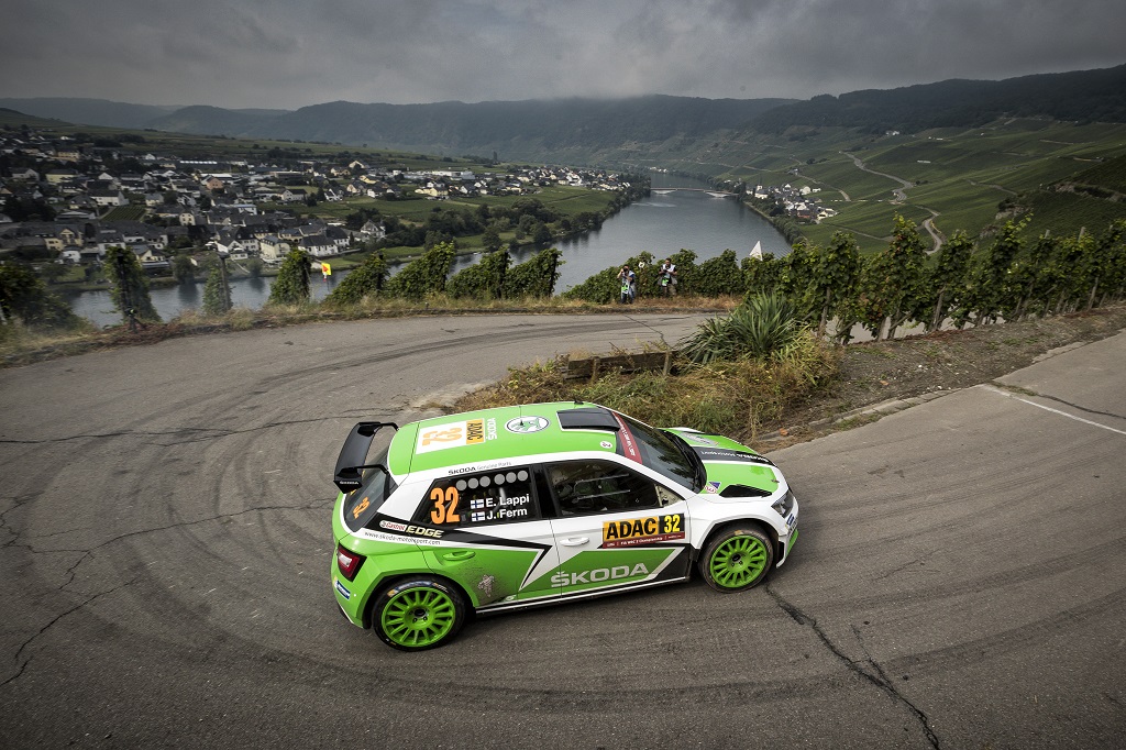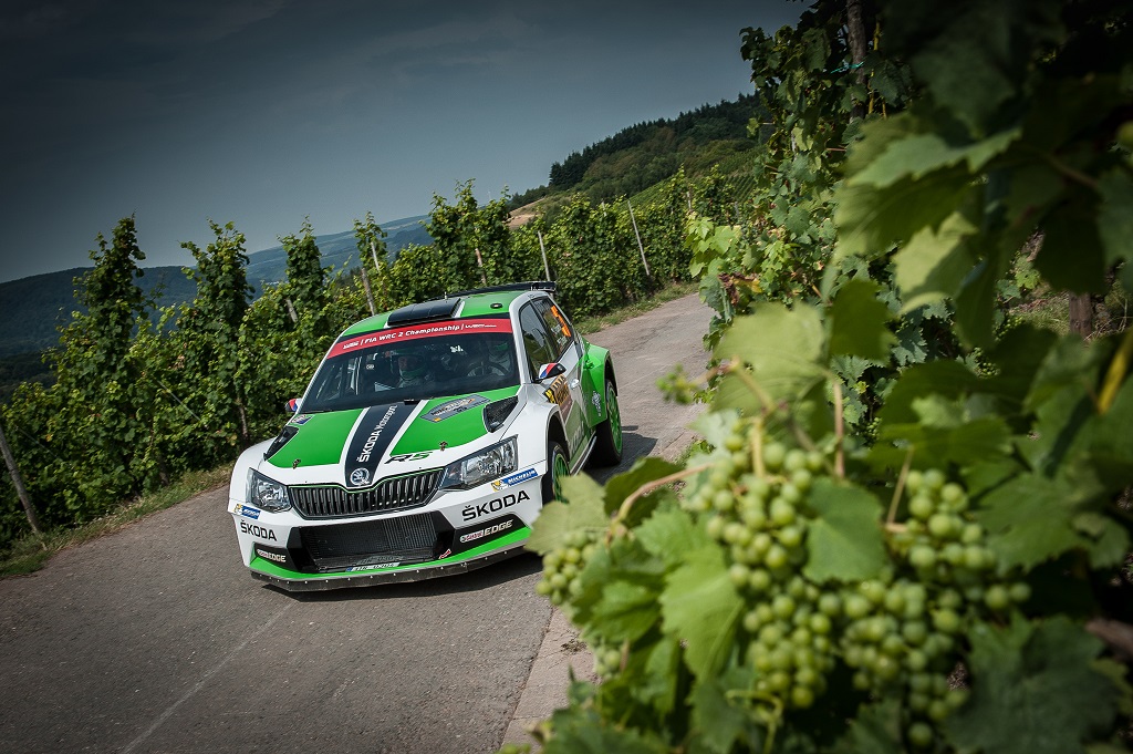A promising start for ŠKODA at the Rally Germany. Three ŠKODA teams have claimed the top three positions after the first day of this classic event on asphalt among the vineyards of the Moselle, near Trier. Five out of 18 stages have been completed and German drivers Armin Kremer/Pirmin Winklhofer are leading their home rally. They are followed by the ŠKODA Motorsport duo Esapekka Lappi/Janne Ferm (FIN/FIN). In third place: the Belgian drivers Ghislain de Mevius and Johan Jalet, who are also competing in a ŠKODA FABIA R5 at the ninth race in the FIA World Rally Championship (WRC 2).