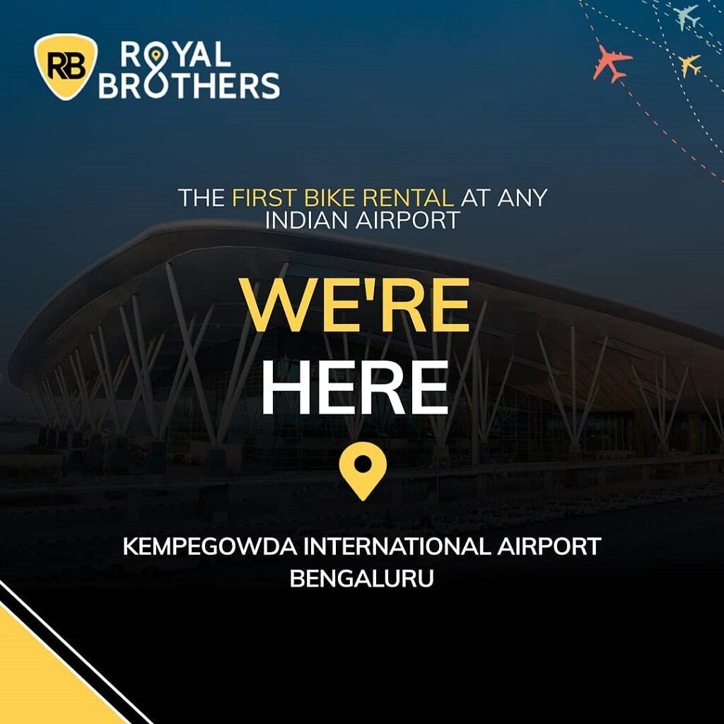 Bangalore, Karnataka, India Royal Brothers today launched a first of its kind bike rental service at Kempegowda International Airport, Bengaluru (KIAB) with much fanfare. Chief Guests B.A. Byrathi Basavaraj, Honourable Minister of State for Urban Development, Mr. Srikanth Gowda M.N., former BBMP Corporator and B.N Jayaprakash, former BBMP Corporator graced the launch event at the Airport.