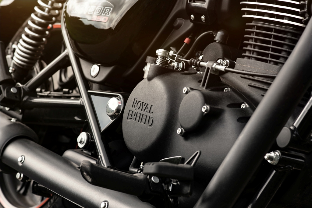 Designed and developed by the talented teams of designers and engineers based at Royal Enfield’s two state-of-the-art technical centres, in Chennai, Tamil Nadu, and Bruntingthorpe, UK, the Meteor 350 is an undeniably attractive motorcycle. The quality of refinement – mechanical, fittings and finish – has been raised to a new level to give a truly top-class, modern motorcycle, while retaining the all important Royal Enfield DNA. With a 349cc air-oil cooled single-cylinder engine, the Meteor generates 20.2 bhp and 27 Nm of torque at 4000 rpm, resulting in an abundance of the low-down grunt that’s a fundamental characteristic of a cruiser. Designed with a balancer shaft, the new platform gives a smooth and well-mannered ride experience, while great care has been taken to retain that essential Royal Enfield ‘thump’. The throttle response of the electronic fuel injection has been optimised for dependable starting and effortless, linear acceleration. For versatility, the new engine has a 5-speed gearbox, with fifth gear being an overdrive for stress-free and economical highway cruising, and a 7-plate clutch for easy gear changes in built-up traffic.