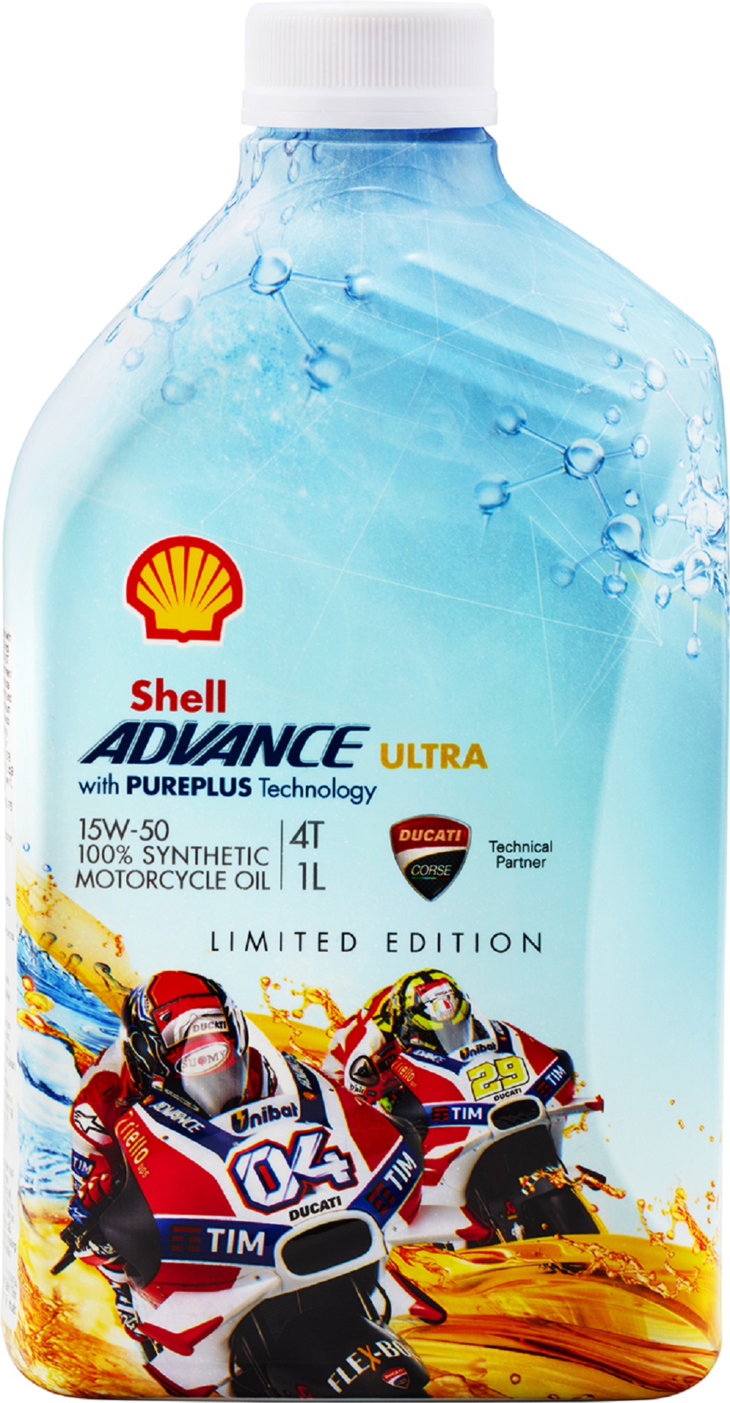 The new limited edition packs have been introduced for two distinct viscosity grades with Shell Advance Ultra 10W-40 and Shell Advance Ultra 15W-50. While the packaging design for Shell Advance Ultra 10W-40 captures the brand’s motorsport association with Ducati over the last 10 years and celebrates Shell Advance the winning ingredient in Ducati’s racetrack journey; the pack design for Shell Advance 15W-50 captures Shell Lubricants’ MotoGP journey.