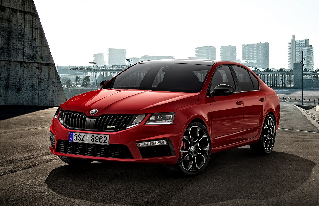 The ŠKODA OCTAVIA RS 245 features the new face of the brand and has particularly sporty design details. The completely new front section with wider radiator grille and the wide honeycomb air inlets in the redesigned bumper provide the ŠKODA OCTAVIA RS 245 with a masculine and dynamic appearance. The slats on the radiator grille and the trim that frames the radiator grille both come in gloss-black. The redesigned headlight clusters in a crystalline look feature full-LED technology and AFS adaptive front headlights as standard. The fog lights, tail lights and number plate illumination also feature LED technology and a crystalline appearance.