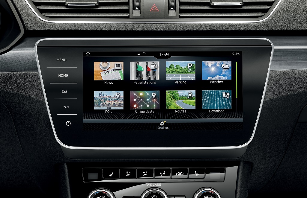 Numerous functions can now be operated with optimised infotainment systems for the ŠKODA SUPERB. The display of the Columbus navigation system has grown from 8 to 9.2 inches and the system Swing from 5 to 6.5 inches. In addition, the glass design enhances the high-resolution displays.