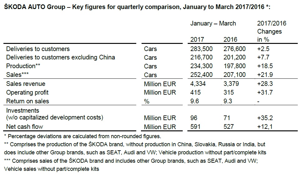 - ŠKODA delivers 283,500 vehicles (+ 2.5%) in first three months of 2017