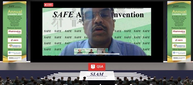 Mumbai, September 28th , 2020: Society for Automotive Fitness & Environment (SAFE), a SIAM initiative, organised its 21st edition of SAFE Annual Convention on 25th September 2020, on virtual platform. The Convention covered three major sessions, the Inaugural Session, Session on Road Safety and a session on Environment Protection.