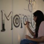 - Thiru, photographer & installation artist Hrishikesh, showcased their work called ‘Singularity’ close to the venue entrance. The artists described their work – an 18 foot tall metal installation, as the point where all parallel lines meet; the moment when man becomes one with the machine; and the journey begins. Another major attraction was the ‘Art Shed’ by Vidhi Khandelwal, a prolific illustrator, Ketaki Pimpal Khare, a multi-media artist and Ravindra Mahale, who specializes in water colors. The trio experimented and showcased art that signified the Rider Mania spirit through various mediums. A small bar at the venue was beautified by an artistic representation by Hammered, an Indian digital artist who specializes in automotive friezes.