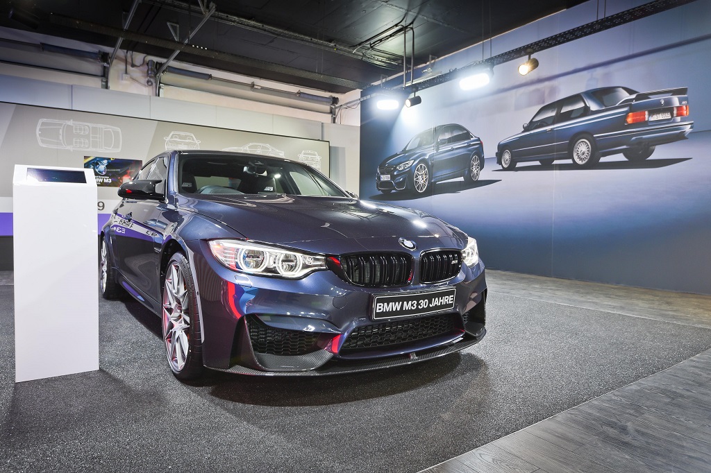 As a tribute to the first generation of the BMW M3, the anniversary edition “30 Years M3” is painted in the exclusive exterior colour Macao Blue metallic, which once celebrated its premiere in BMW’s colour range as a special option for the first generation of the BMW M3.