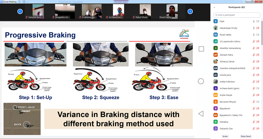At the same time, Honda Road Safety E-Gurukul reached out to 1000+ female college students and teachers across 9 cities of India (Patna, Samastipur, Thane, Mumbai, Calicut, Coimbatore, Chennai, Trichy and Hyderabad).