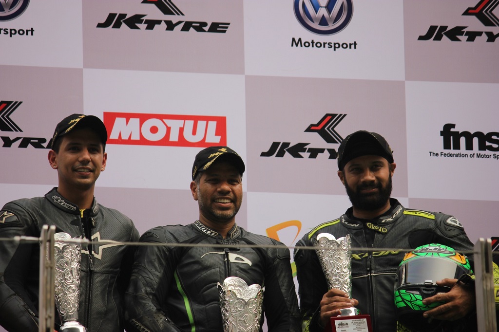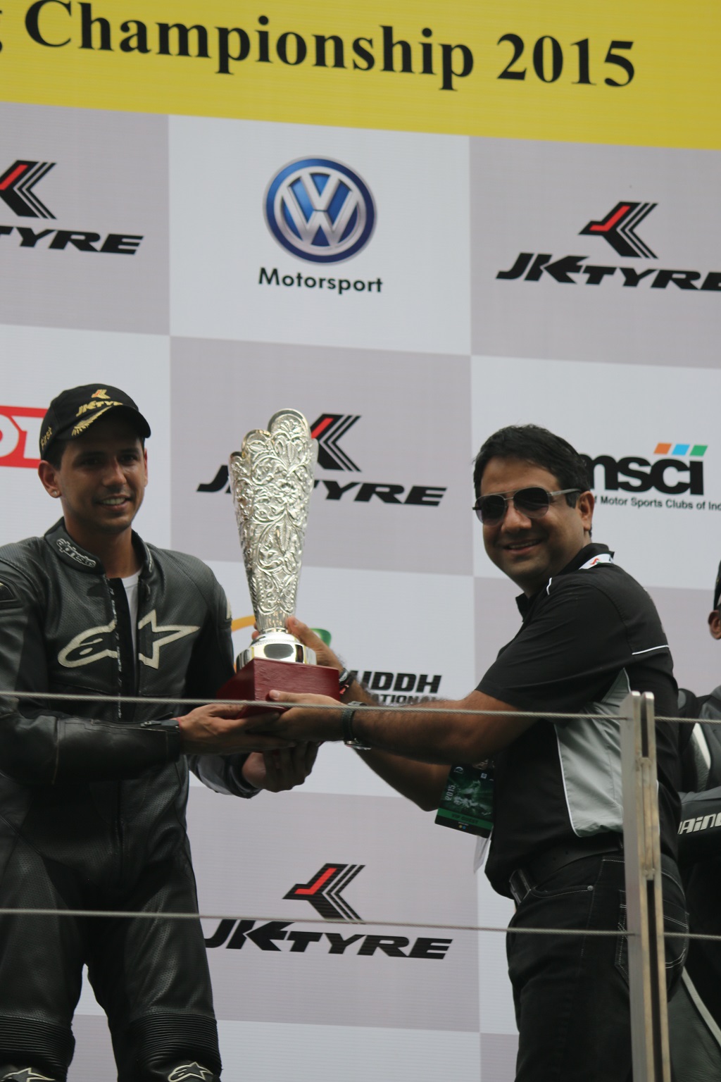 However basis the points carried forward from the previous races this year’s JK Tyre Racing Championship for the 600 cc was won by Mr. Vijay Singh with Mr. Gurvinder Singh coming second and Mr. Archit Kumar third, Once again the championship saw all the three podium positions within the 600cc category going to the riders on Triumph Daytona.