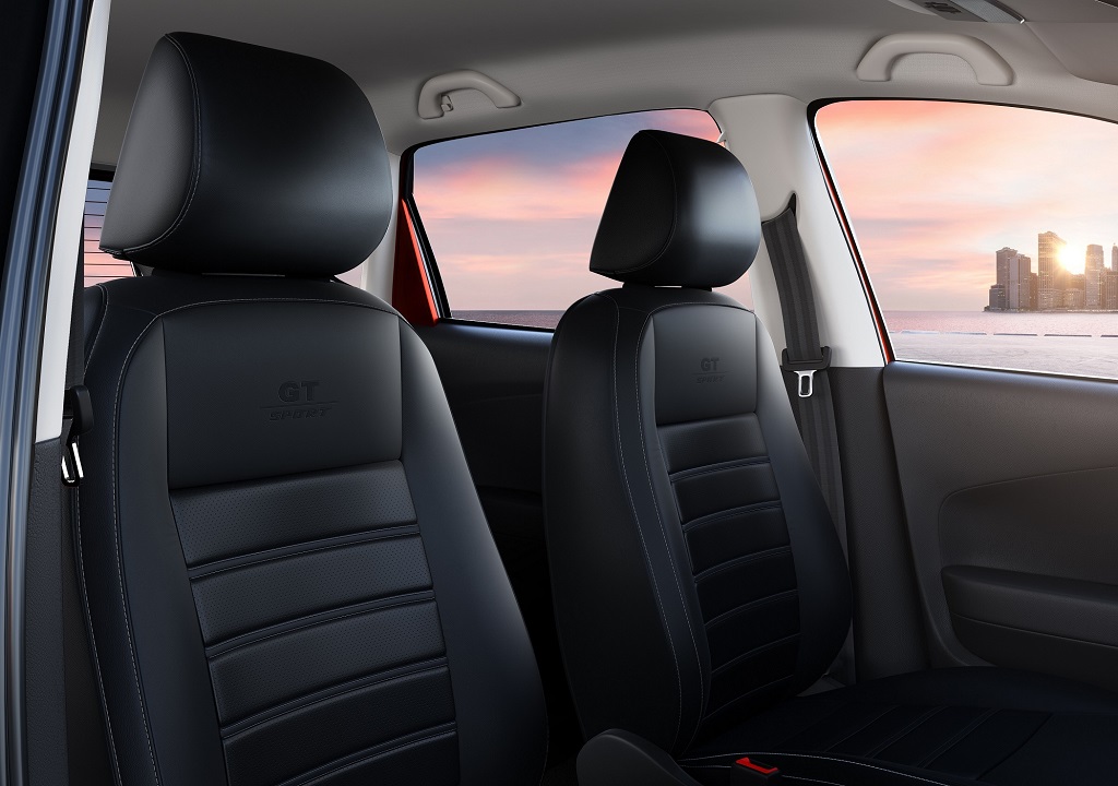 On the exterior, the GT Sport edition is packed with an all new glossy black spoiler, 16” Portago alloy wheels that stretch a bolder stance, Glossy black roof foil that supplements a definition of style and an attractive GT Sport side foil further complementing the distinctive look that the carline is made to offer. Matching the new exteriors the carline comes fitted with leatherette finished GT sport embossed seat covers that amplify the design identity of the new sport edition reserving the subtle and classy stance.