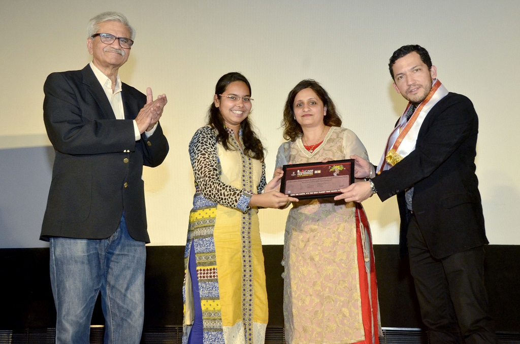 Representative of St. Xavier’s College (2nd from left) receives the Best Volkswagen International Students Animation Competition (India)